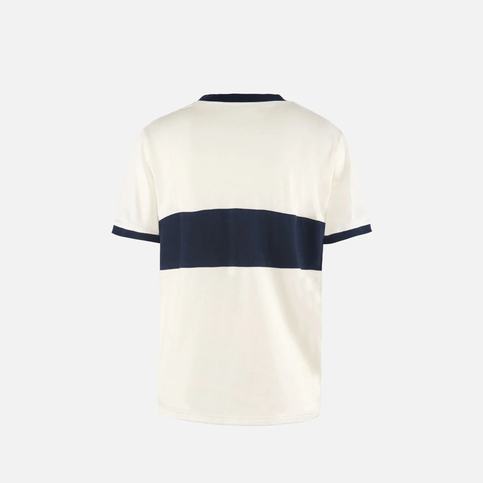 Inspirada en la ropa deportiva de los años 70, la camiseta Cotton Ringer está confeccionada en suave algodón japonés reciclado con ribetes acanalados en contraste en el cuello y las mangas. Una franja a juego recorre el pecho, con el logotipo estampado en el centro.